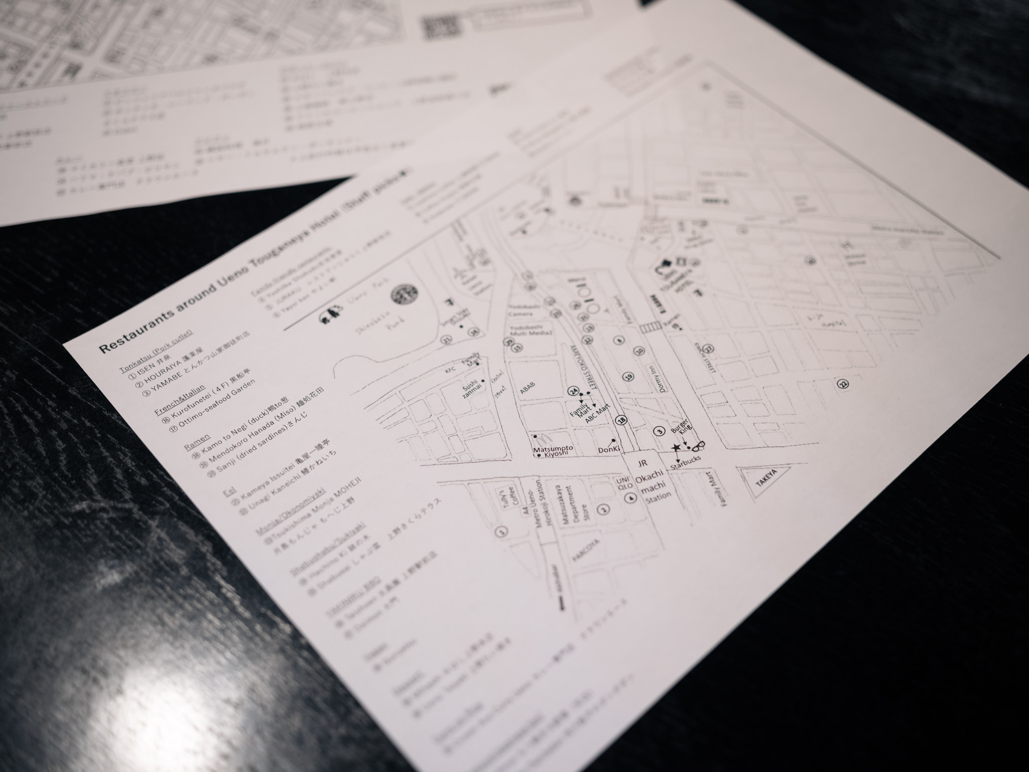 If you are in doubt about what to eat in Ueno, go ask the staff at Toganeya for advice. At Toganeya, the staff has prepared both Japanese and English versions of the restaurant map, and will recommend the best places to eat according to each customer’s tastes and mood. In addition to these customer recommendations, Toganeya shares with its staff all the information they obtain while talking with customers. At the root of this is the desire held by all the staff to “make the travel destination feel like home.