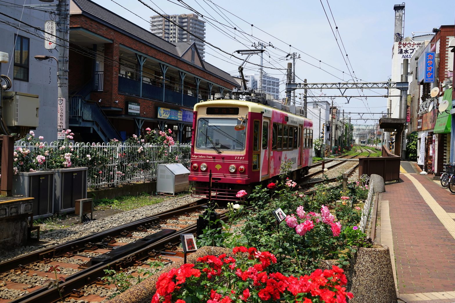 The combination of the retro station and streetcars creates a nostalgic ambiance, making it a popular photo spot. The area around Minowabashi Station is also famous for its beautiful roses, which bloom in abundance along the Toden Arakawa Line. The roses in the square in front of Minowabashi Station are particularly stunning, earning the station a spot on the list of the “100 Best Stations in Kanto.”